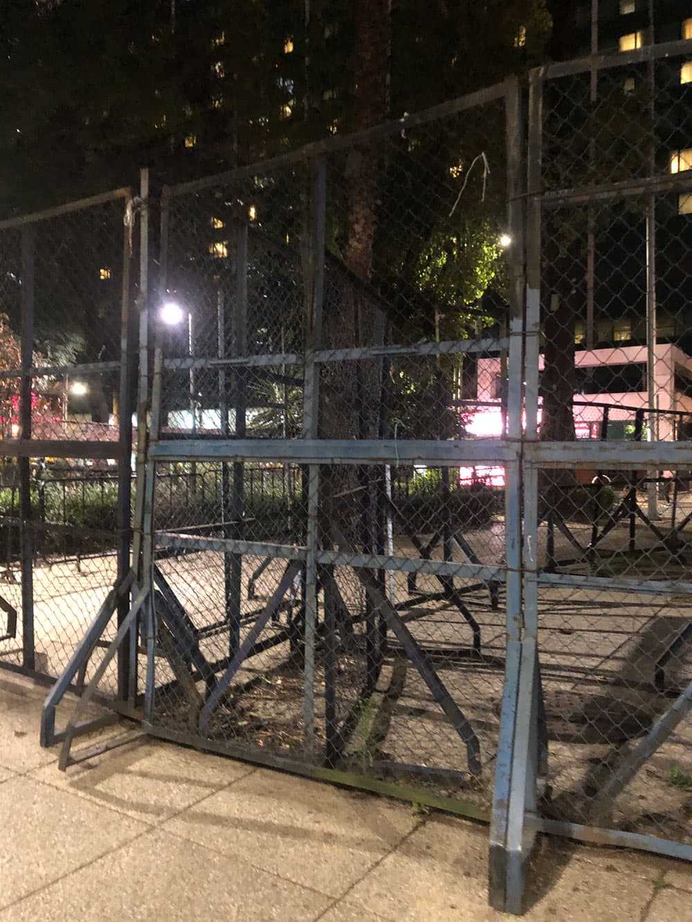Barricades at night